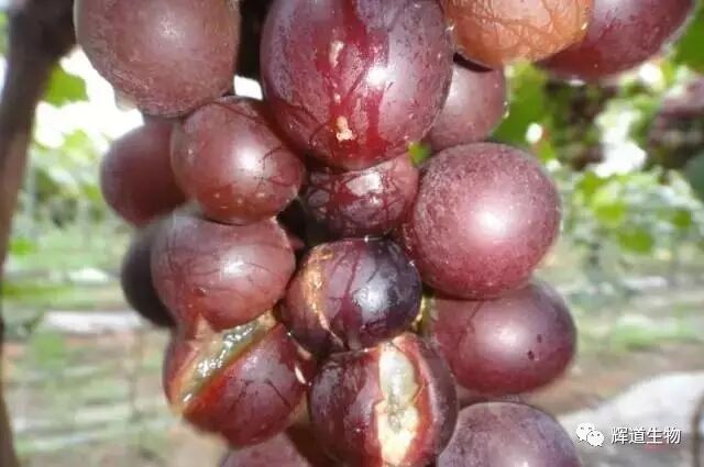 ②果粒产生裂口,果汁外溢,易感染霉菌,造成腐烂,不能食用。